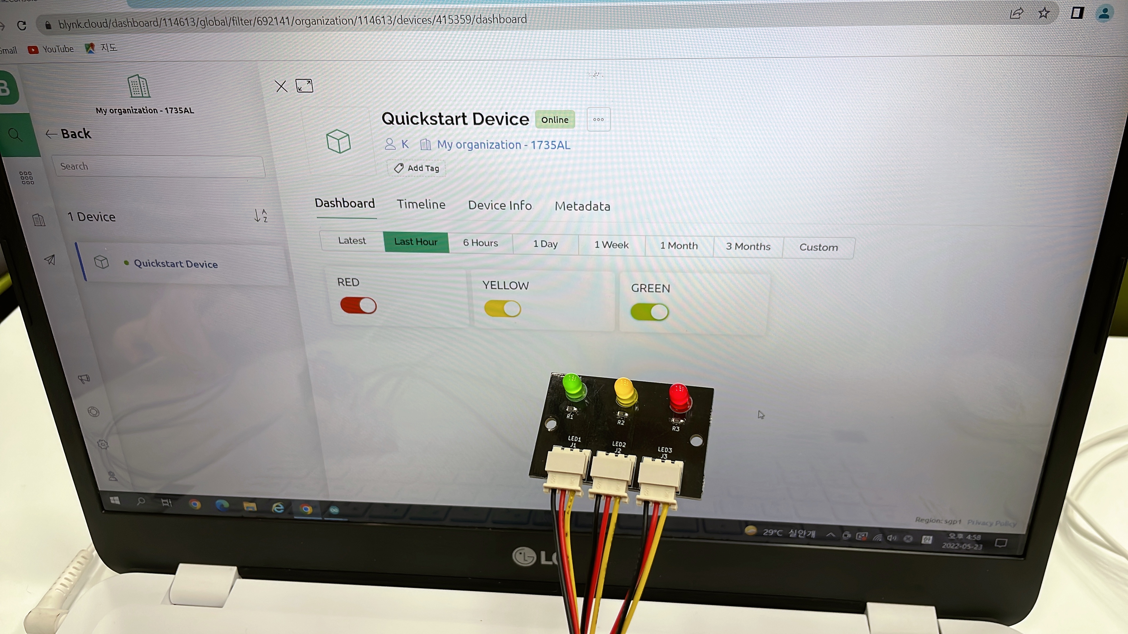 이렇게 Web에서 버튼을 통해 LED가 켜진 모습입니다 :)