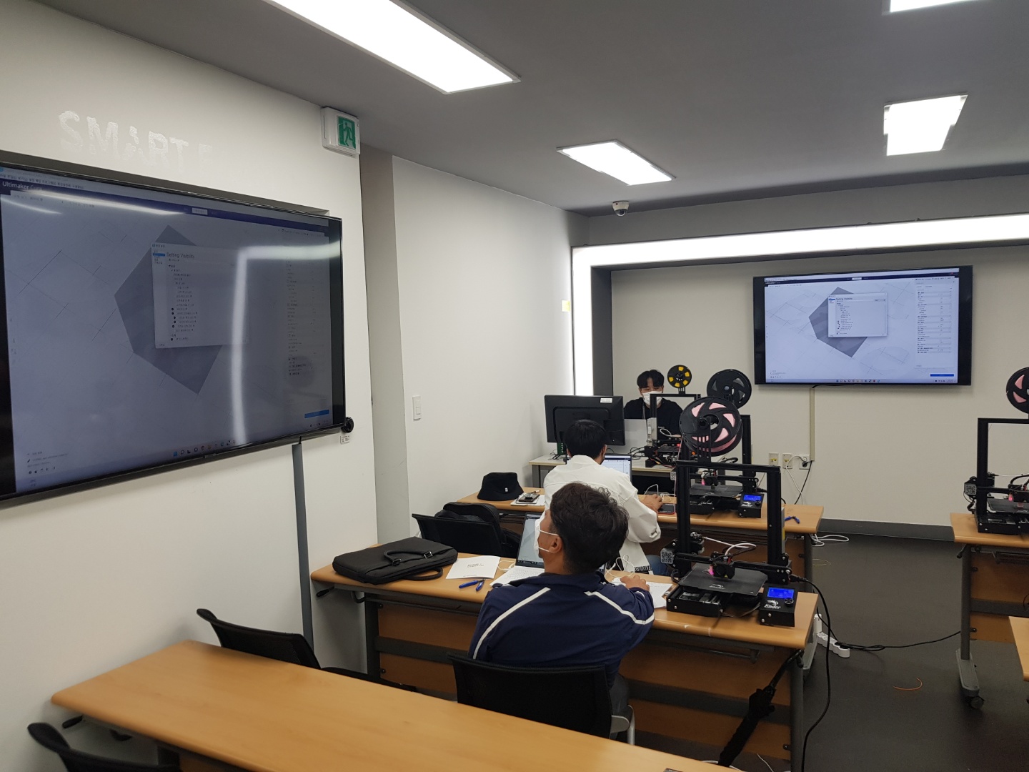 그래서 직접 3D프린팅 기계를 만지고, 슬라이싱 프로그램을 세팅하면서 3D프린팅 기계를 다루기 위한 최적의 교육을