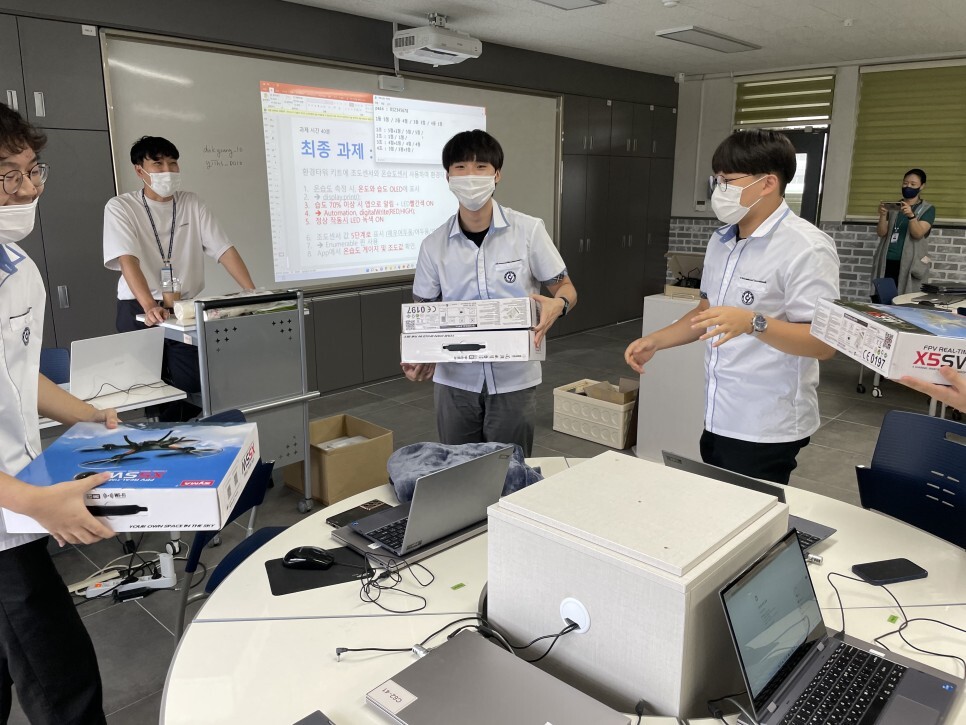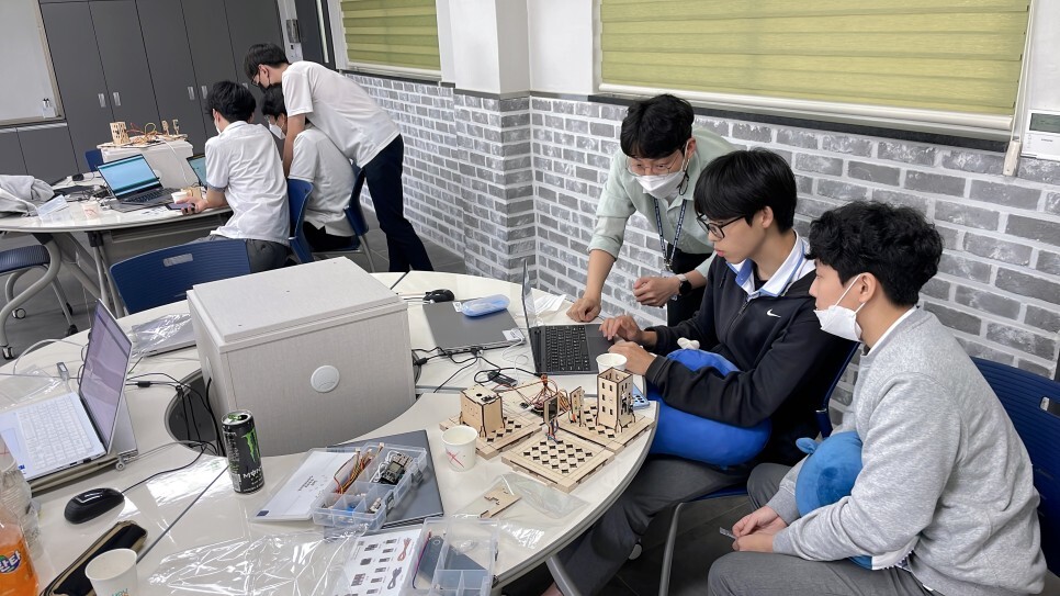 학생들이 직접 스마트시티 키트를 조립하고 다양한 센서들을 이용하여