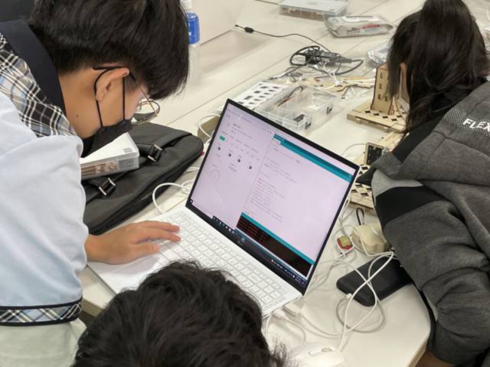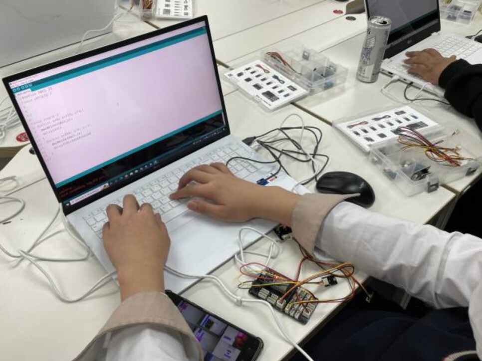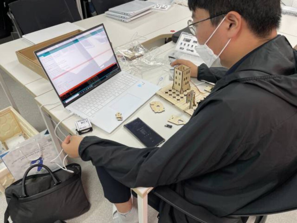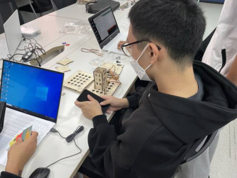 학생들이 직접 스마트시티 키트를 조립하고 다양한 센서들을 이용하여