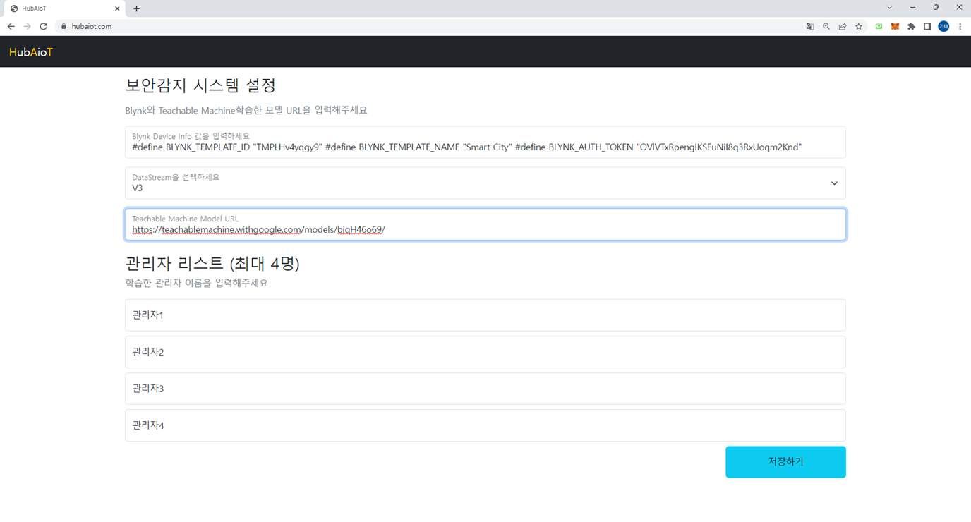 그리고 자체 플랫폼을 통해 티처블머신에서 확인된 값을 파싱하여 BLYNK와 쉽게 연동할 수 있습니다.