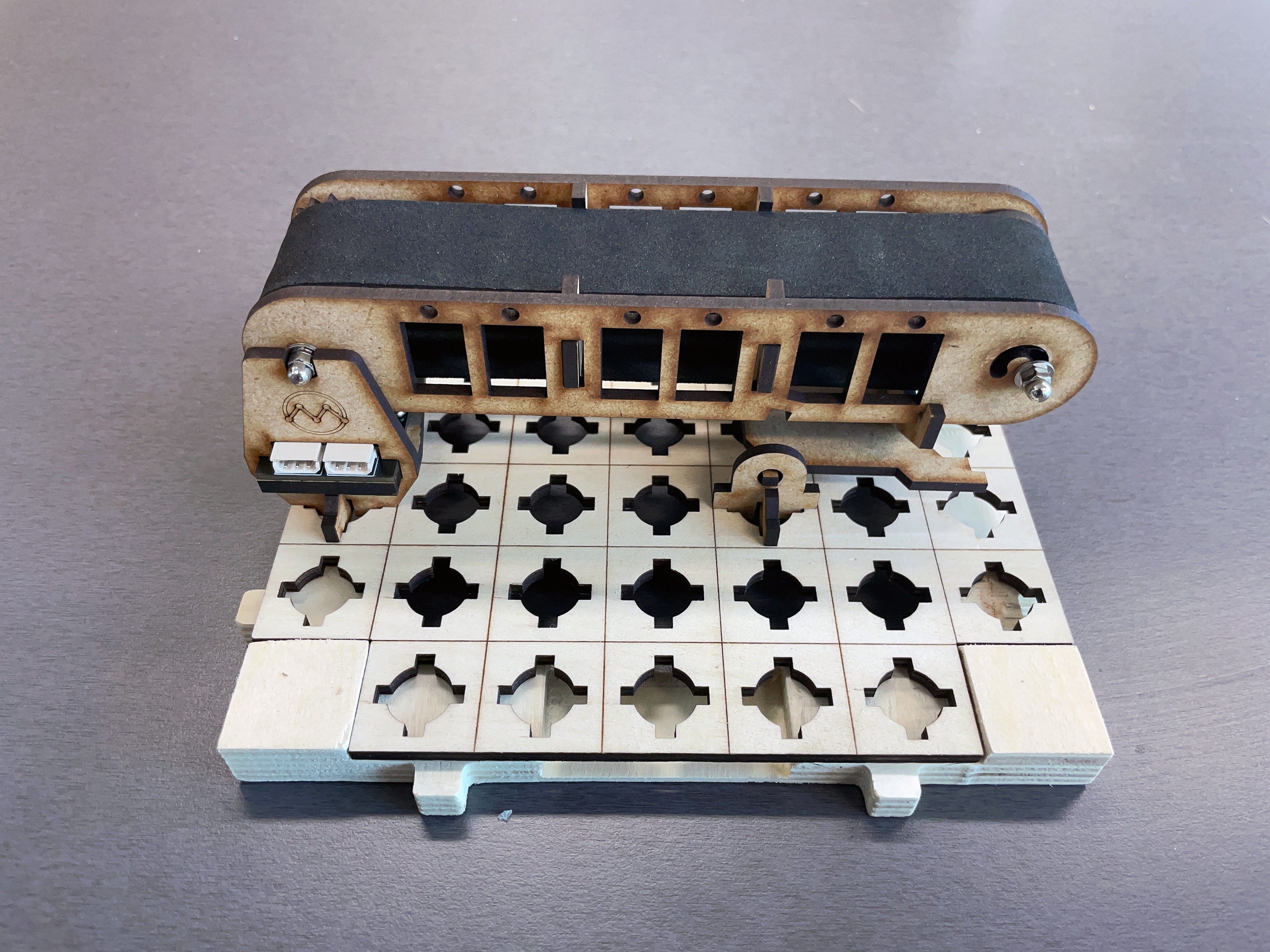 조립이 쉽도록 위 아래 부분이 쉽게 분리되도록 만들었어요. 아래 모터부분에 위의 컨베이어를 올리면 바로 작동이 되죠.
