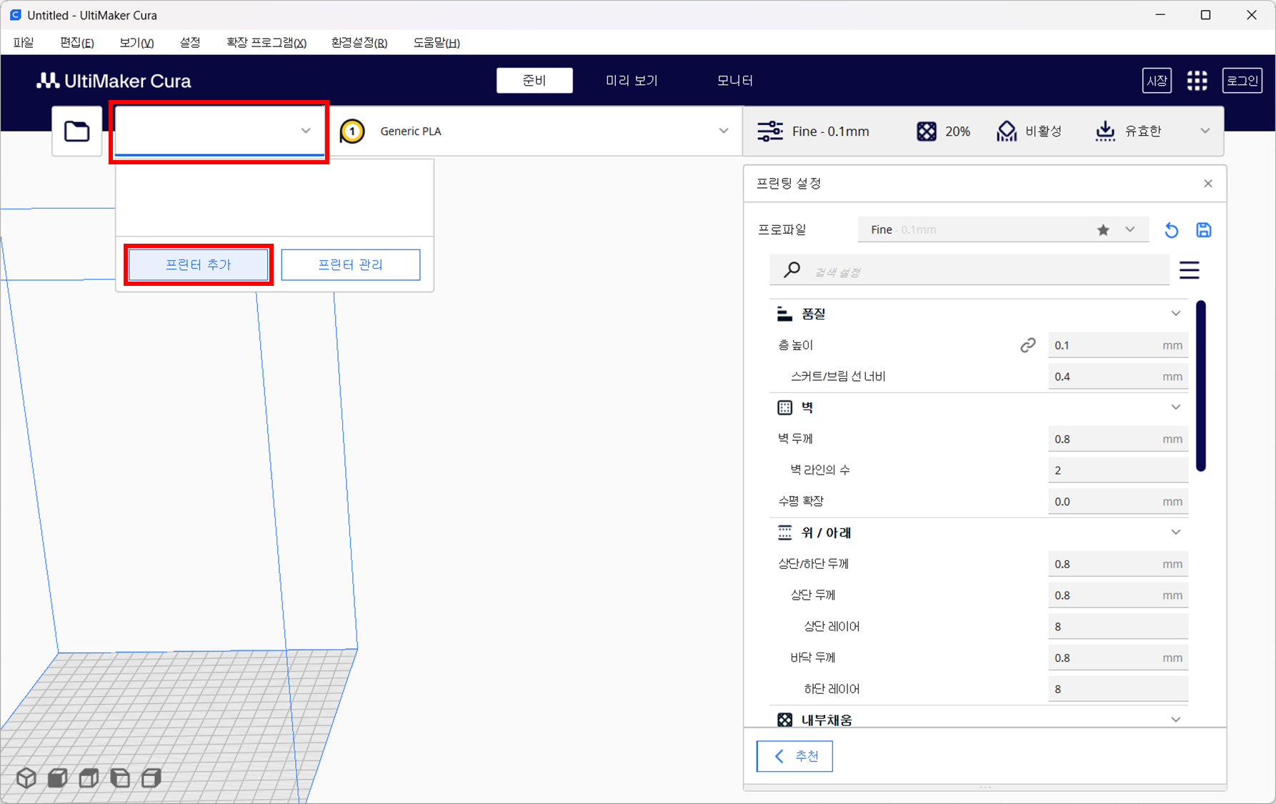 ■ 3D 프린터기 추가하기