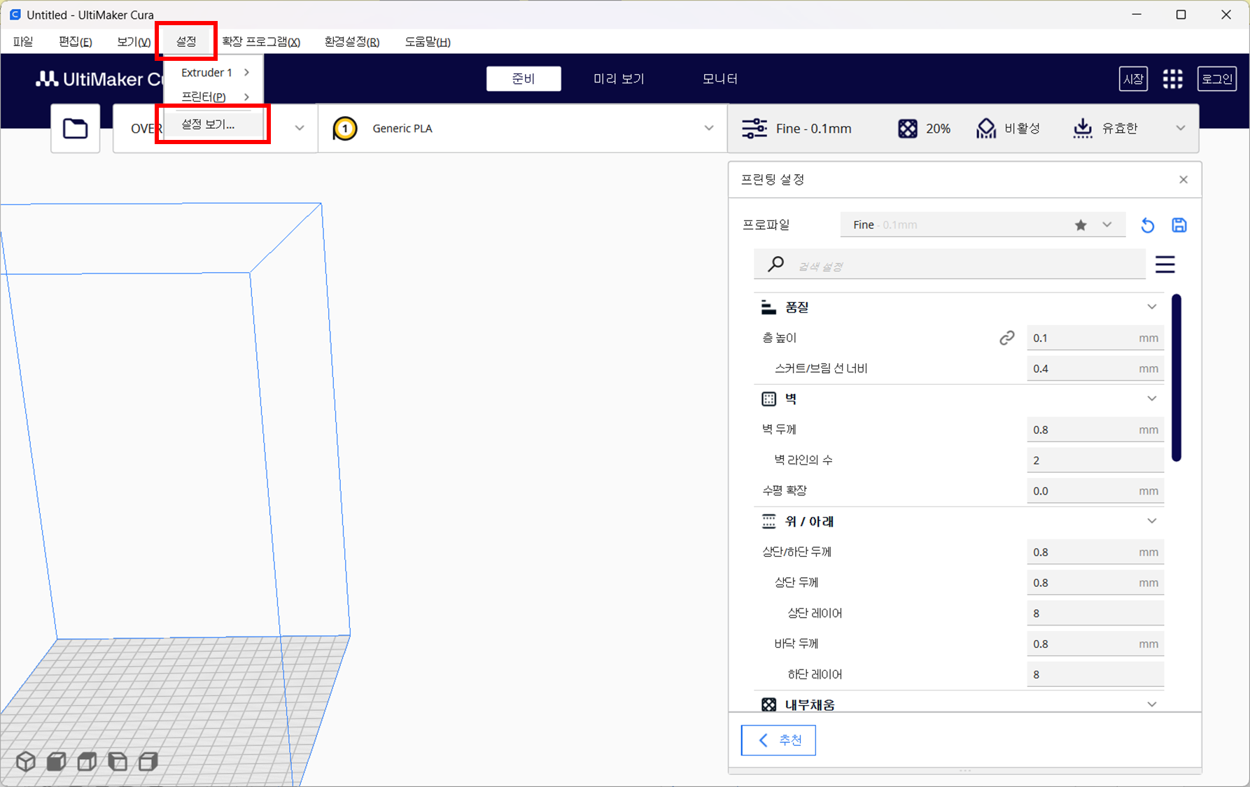 ■ CURA 한국어 설정하기