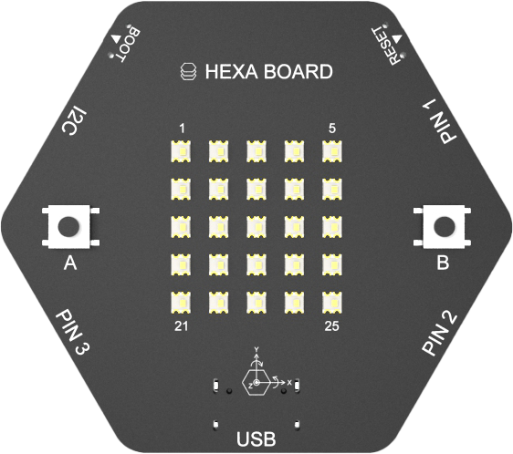 기울기를 통해 보드가 기울어졌는지, 확인하고 앞쪽의 5X5 픽셀에 문자, 숫자, 이모티콘 등