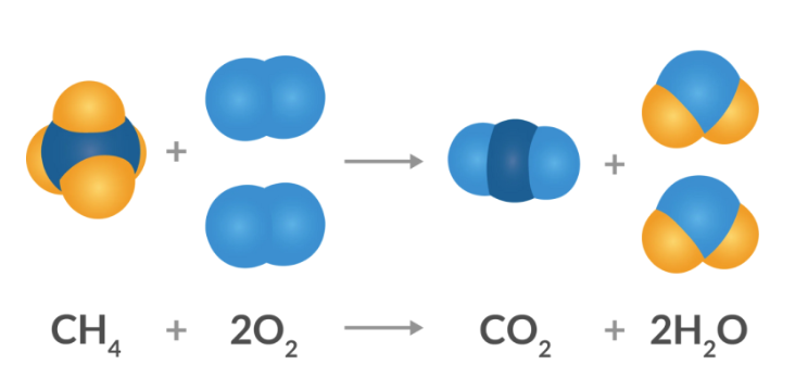 가장 대표적인 것이 메탄(CH4)이 연소할 때 화학 반응이죠.