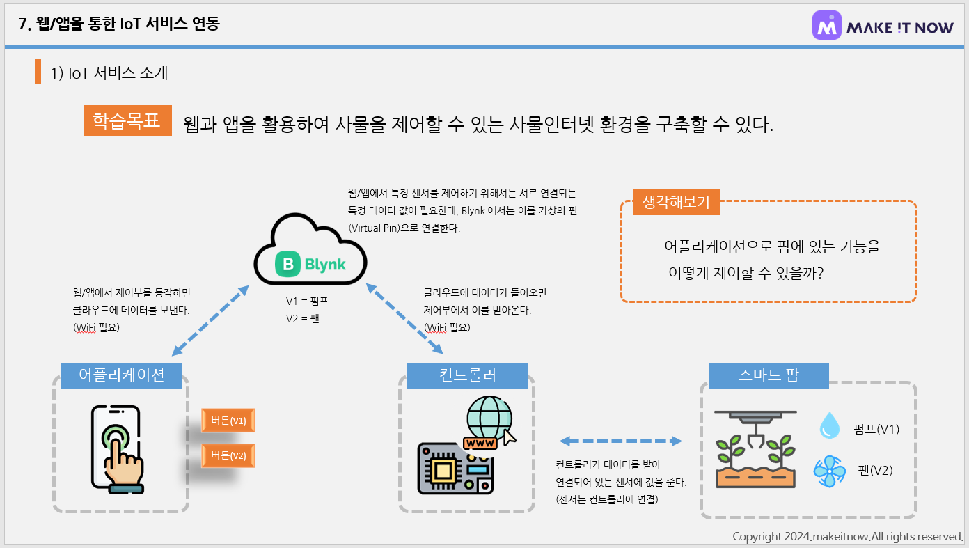 기본적인 IoT 서비스에 대한 간단한 수업이 이루어지고,