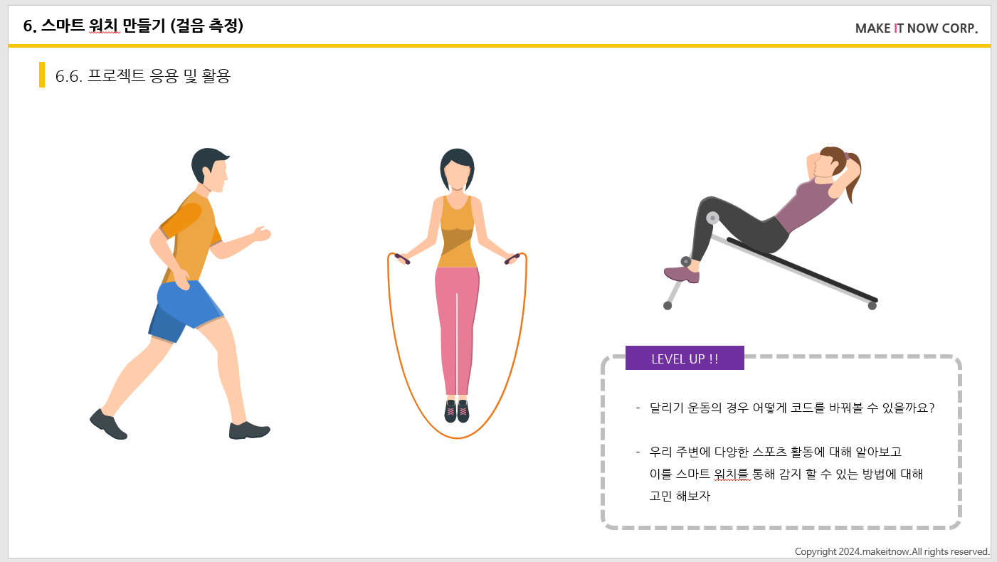 여기에 심화과정으로 카메라를 활용하여 AI를 접목하면 자세를 인식하여 스쿼트 하기 등