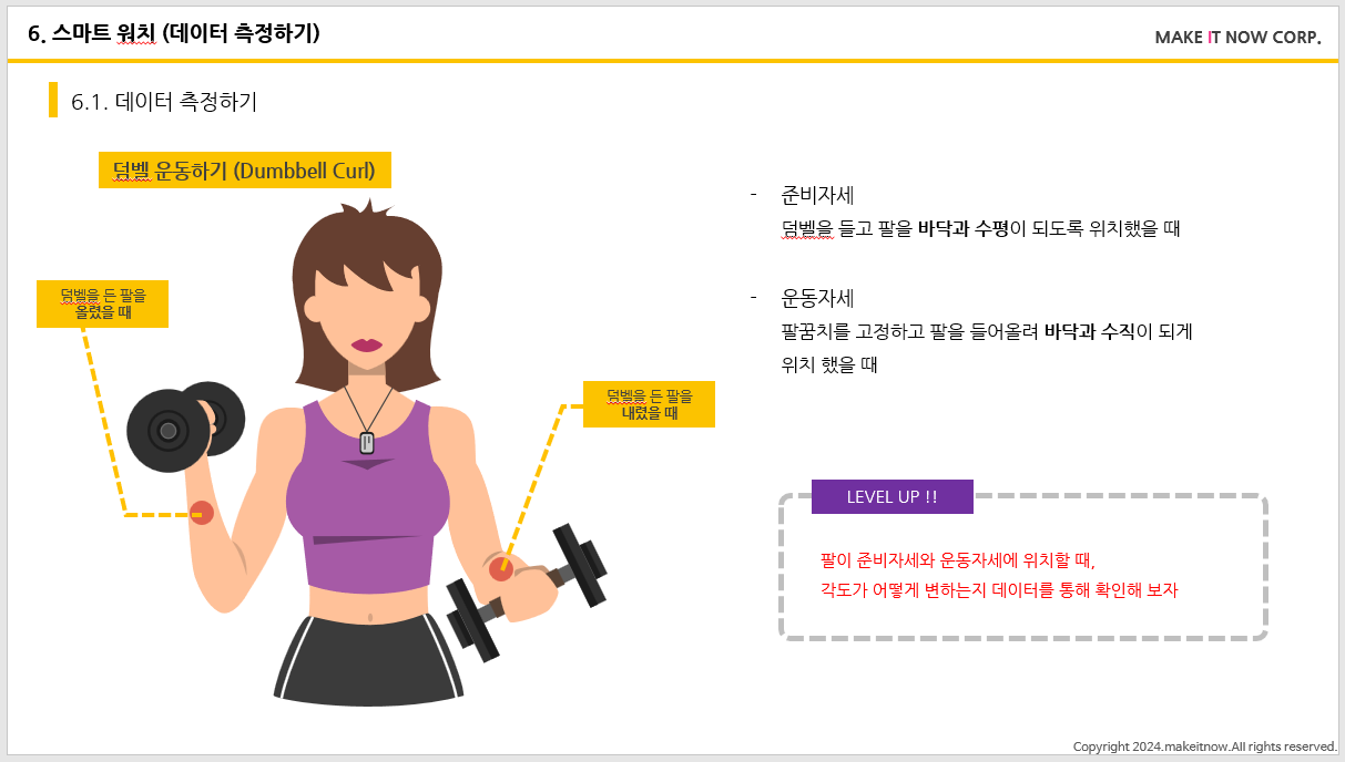 ■ 덤벨운동 시 팔의 각도 데이터로 측정하기