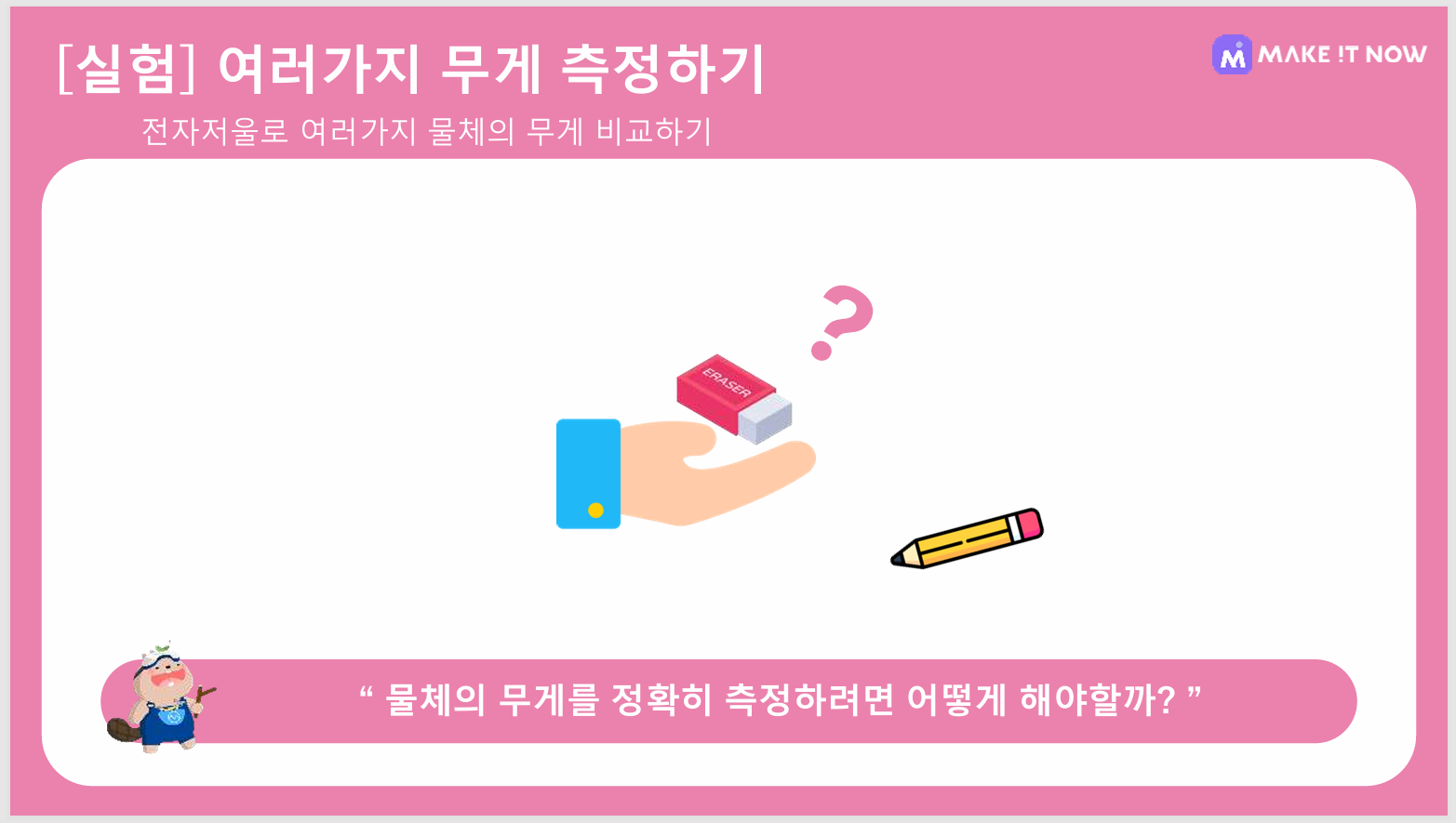 오늘은 초등학교 3학년 1학기 / 과학 / 1단원. 힘과 우리생활 / 물체의 무게 비교하기 실험을 하려고 합니다.