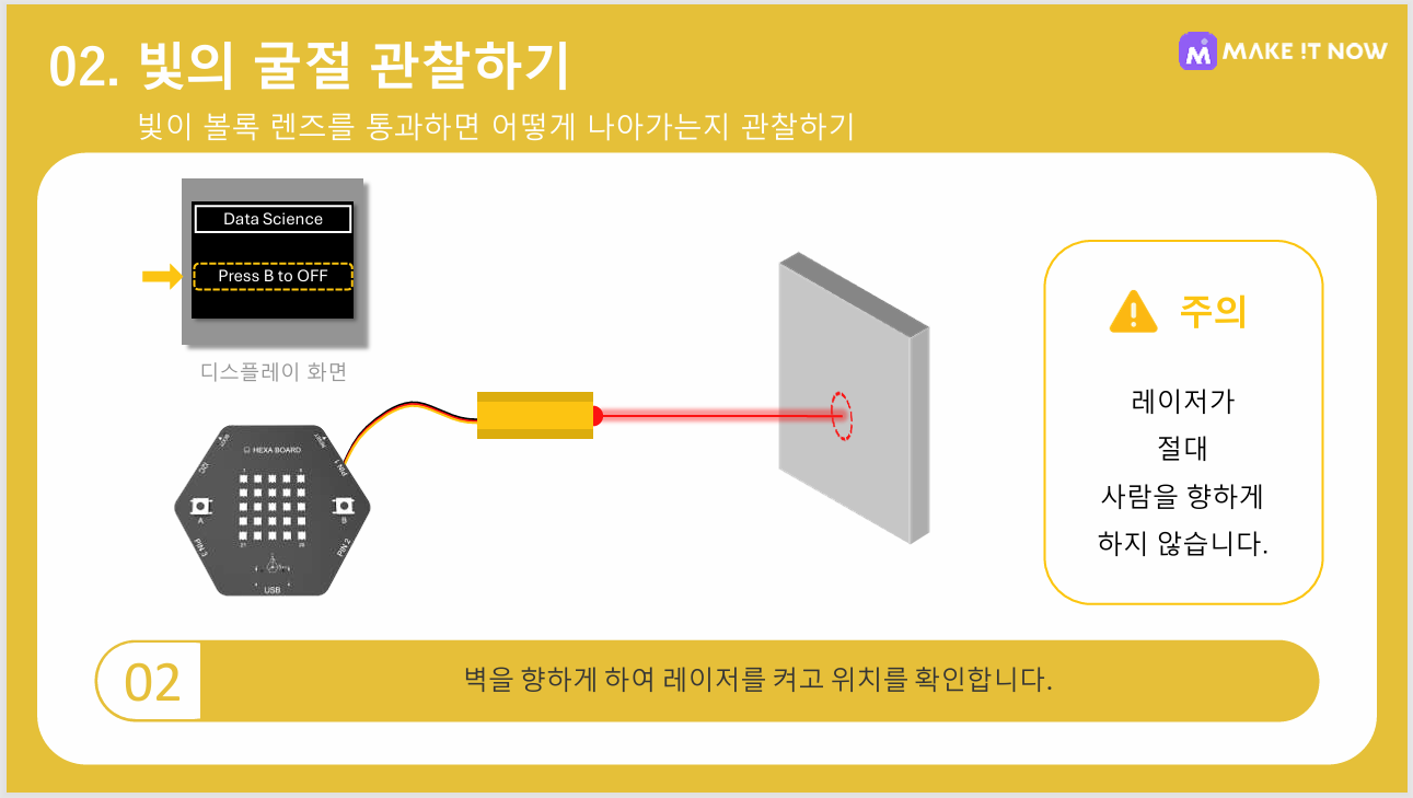 1. 버튼을 눌러 레이저 발생