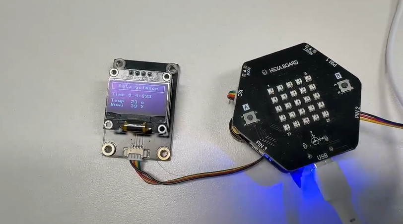 실험장치 : 헥사보드, 온습도센서, 디스플레이(OLED)