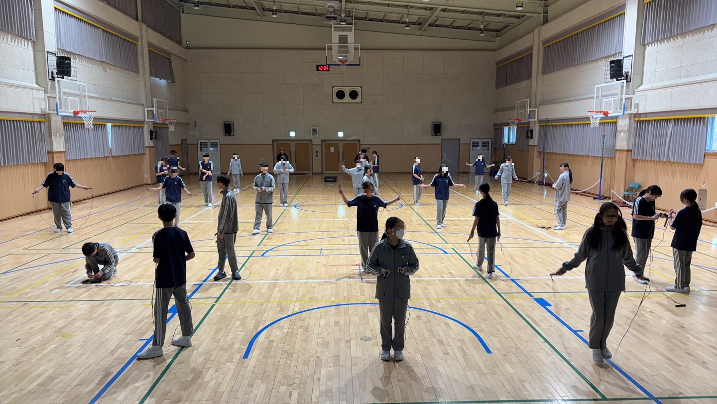 오늘은 수업은 아니고, 저희가 만들고 있는 스마트 줄넘기를 테스트하는 현장을 공개해 보겠습니다.