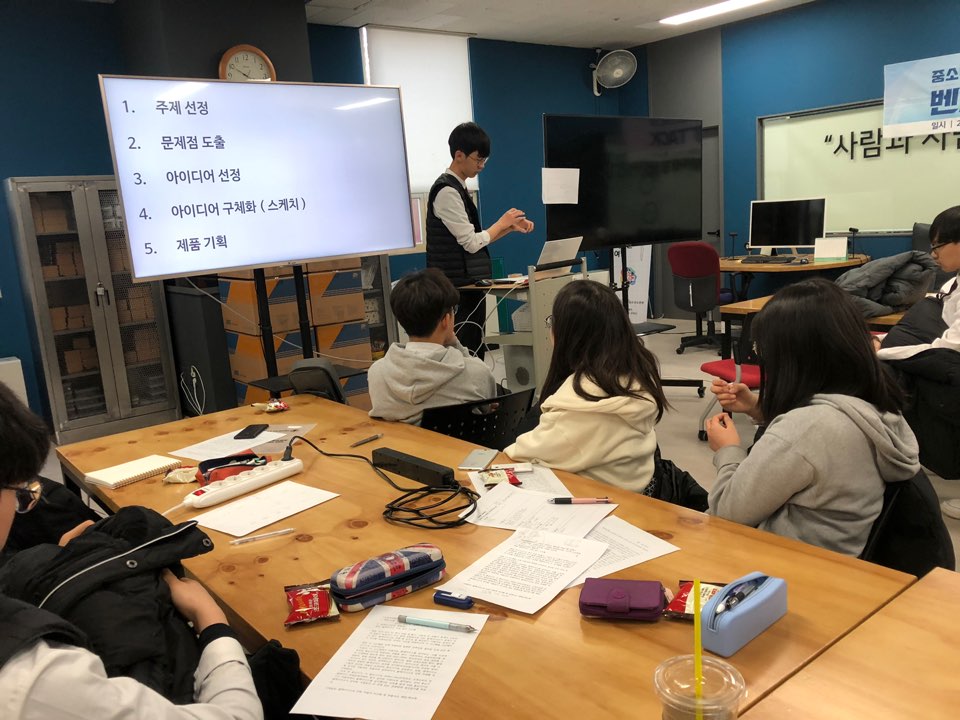 저희는 친구들에게 저희가 아이템을 개발하는 전체적인 프로세스에 대해 설명을 해주고 아이들이 만들고 싶은