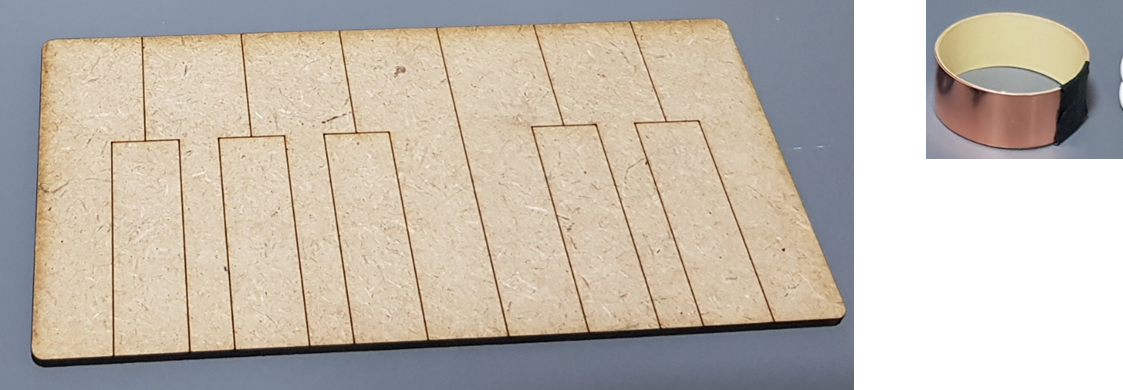 피아노 보드판에 구리테이프를 붙여 줍니다.